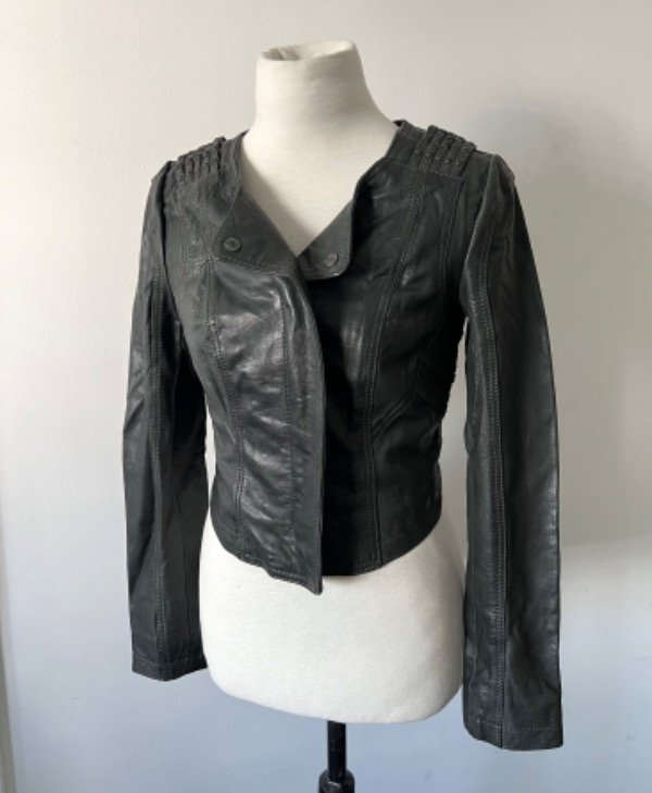 cuero genuino, con detalles de tachas en hombros. nueva con etiqueta.