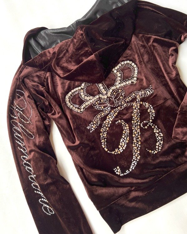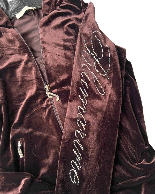 perfecto estado, terciopelo marron brillante con detalles en strass.